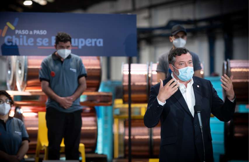 “Podrán tener incentivos, subsidios, ayudas para que los trabajadores que están suspendidos regresen a sus trabajos y para crear nuevos trabajos”, dijo el Mandatario, en el marco de un conversatorio con trabajadores y empleadores de una empresa manufacturadora de cobre en Cerrillos.