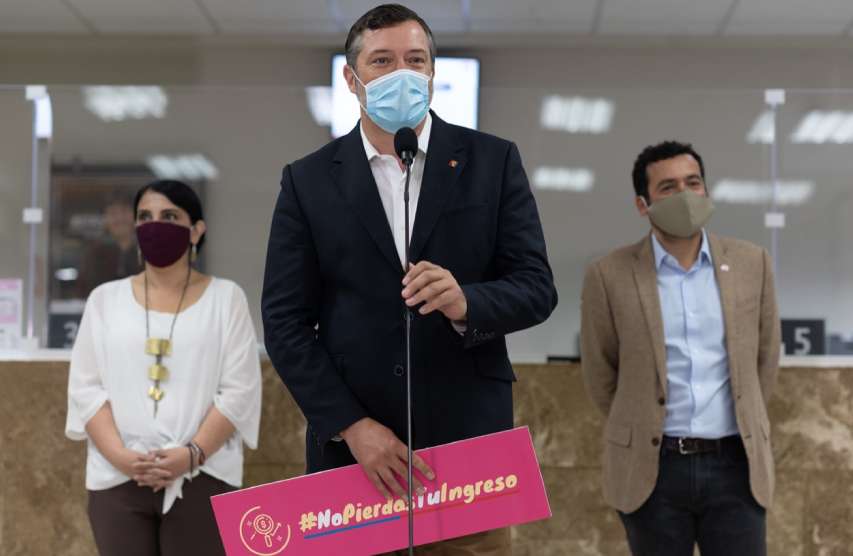 Santiago, 12 de noviembre de 2020.- El presidente de BancoEstado, Sebastián Sichel, hizo un llamado a cobrar los dineros del Ingreso Mínimo Garantizado que aún no han sido retirados, en el marco del lanzamiento de la campaña “No Pierdas Tu Ingreso”.