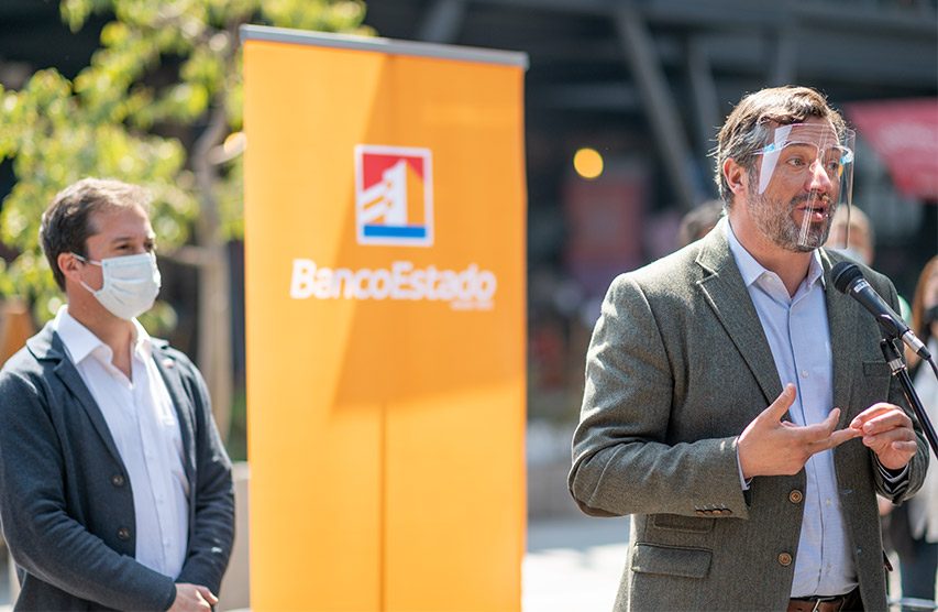 El presidente de BancoEstado, Sebastián Sichel, junto al ministro de Economía, Lucas Palacios, visitaron a empresas del rubro gastronómico ubicadas en Patio Bellavista, en donde entregaron un balance sobre las medidas destinadas a apoyar a los micro y pequeños empresarios del país e hicieron un llamado a seguir accediendo a ellas con el objetivo de acelerar la reactivación económica.