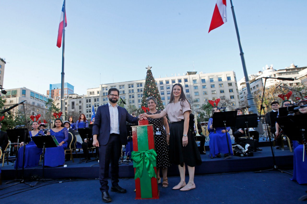 Junto al Presidente Gabriel Boric, BancoEstado inauguró árbol de Navidad en la Plaza de la Constitución