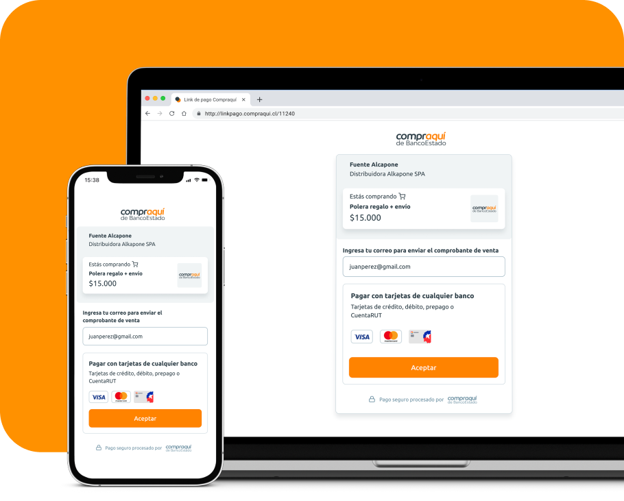 Compraquí da la opción de generar un enlace de venta, el cual puedes enviarlo por tus redes sociales, con el cual puedes realizar cobros a distancia.