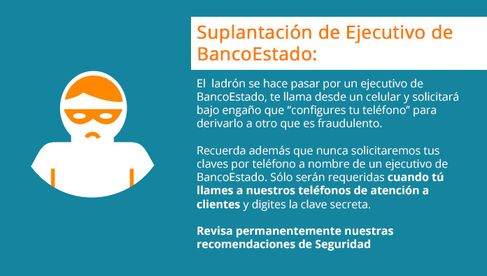 La suplantación telefónica consiste en un método de Ingeniería Social, donde recibes la llamada de un supuesto Ejecutivo o representante de tu banco indicando que tienes montos a tu favor, o tu cuenta fue bloqueada, o algún tipo de beneficio que para hacer efectivo debes entregar tus claves del banco, combinación de tarjetas de coordenadas y/o código de autorización enviado a tu celular.